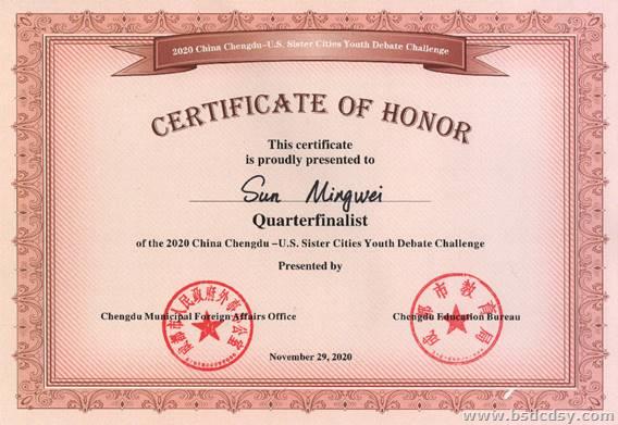 由成都市人民政府外事办公室和成都市教育局主办,美中国际教育集团承办,面向成都市和美国友好城市、友好合作关系城市、友好交流城市的高中生的2020(第四届)中国(成都)·美国友城青少年英语辩论挑战赛中美挑战赛日前圆满结束。