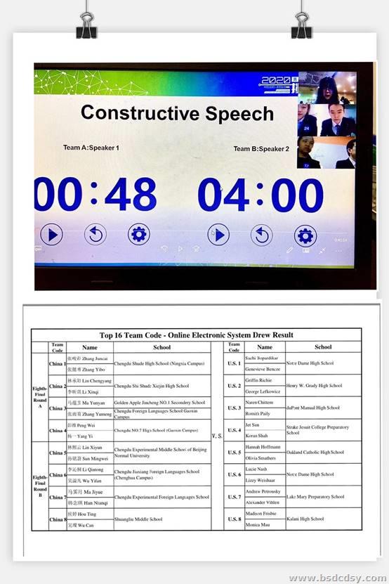 我校学生在中国(成都)·美国友城青少年英语辩论挑战赛中位列八强