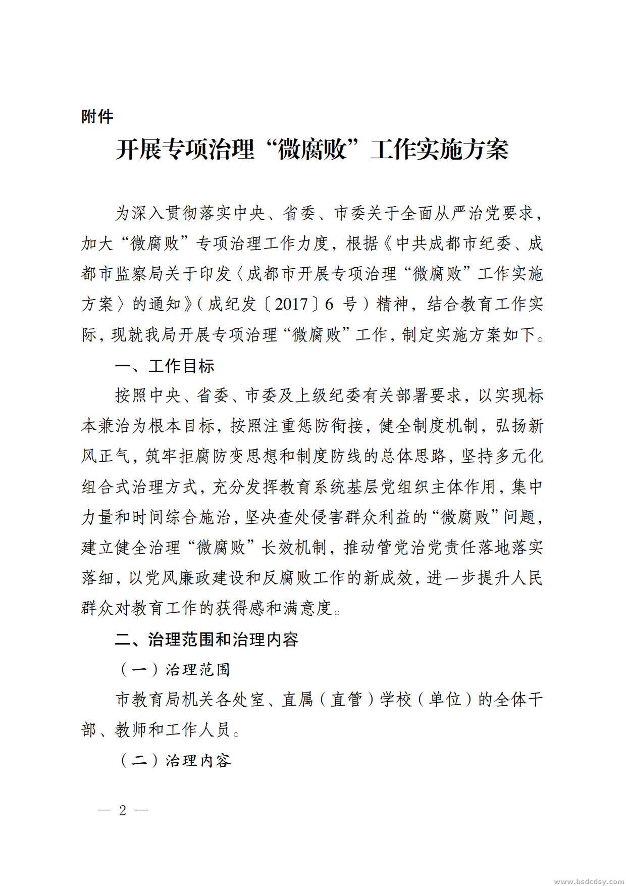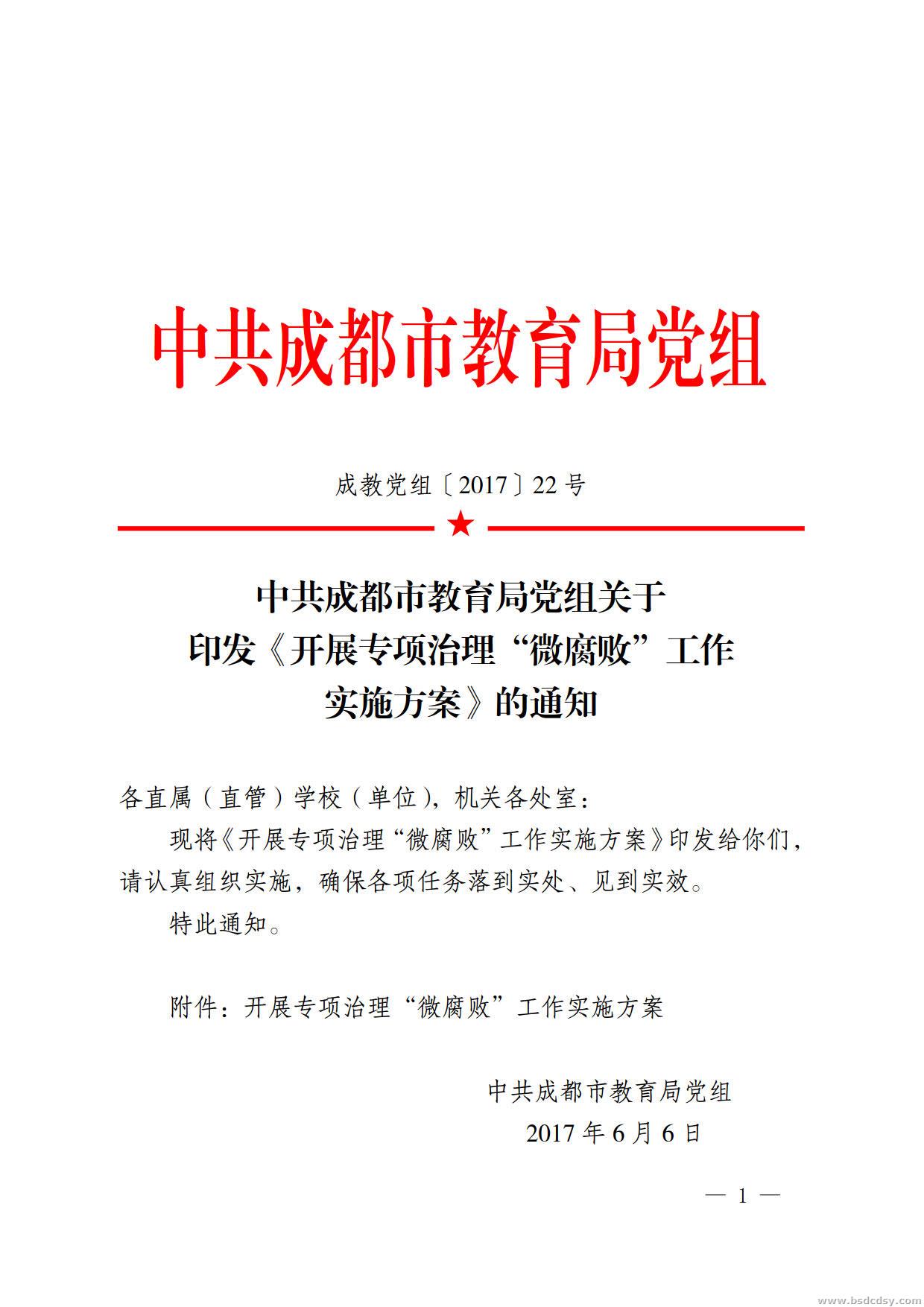 中共成都市教育局党组关于 印发《开展专项治理“微腐败”工作 实施方案》的通知