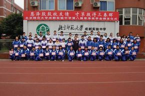 同学们,我们国家正在经历一个重要的转型时期。创新将是我们国家今后很长一段时期的重要任务,创新型的国家就是要靠你们这些未来的创新型人才来支撑。去年,刘校长同我讨论在北师大成都实验中学成立创新性教育实验班,我知道现在这个班已经成立了,培养有创新性人才是我们教育的梦想,也是一代老科学家的梦想。年前,我们学院一位老教授,也是我的老师,在为学生做报告的时候,重新提起55年前,毛泽东主席的一段话。那是1957年,他在莫斯科留学的时候,毛泽东主席在莫斯科为中国留学生做报告时的一段话:“你们好像八九点钟的太阳,世界是你们的,也是我们的,但归根到底是你们的”。前两天,我看到我们习近平副主席在美国对留学生的讲话也提到这段话。所以,同学们,创新型的中国肯定将是你们的。