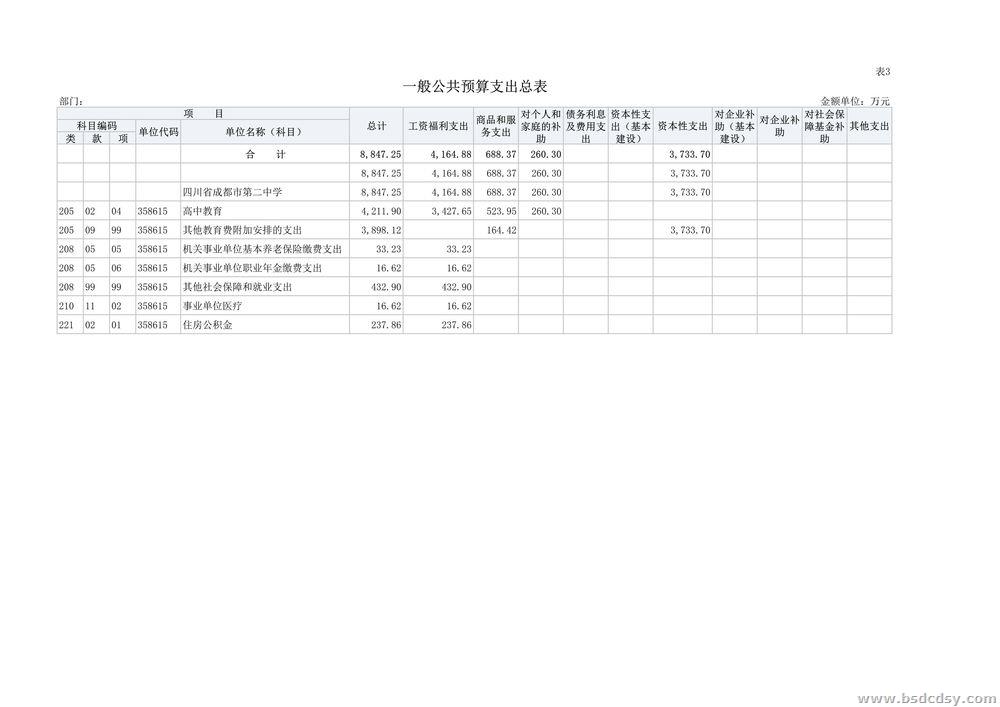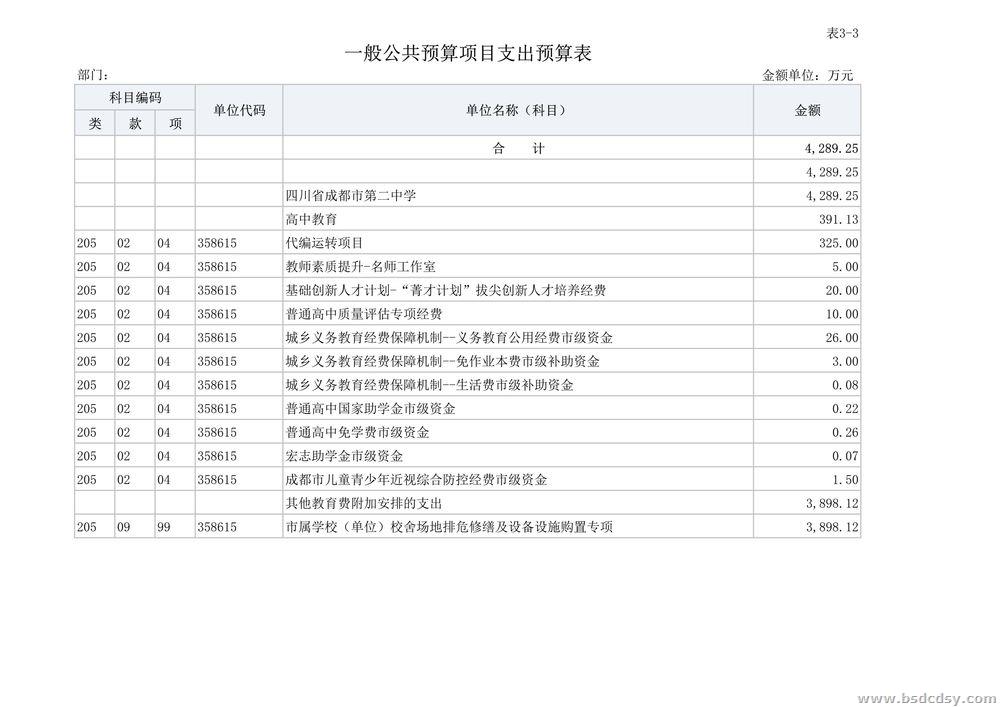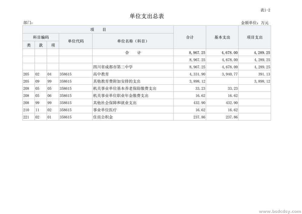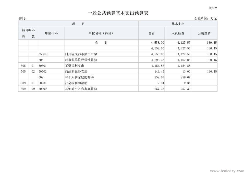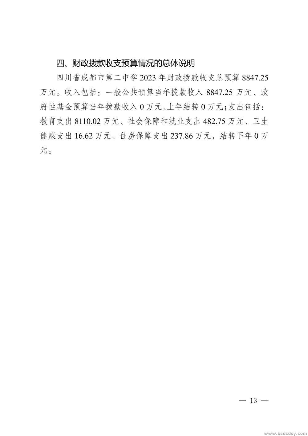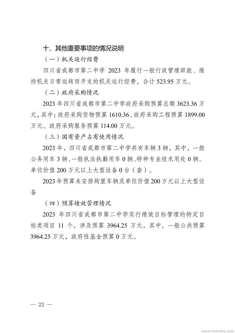 四川省成都市第二中学2023年部门预算