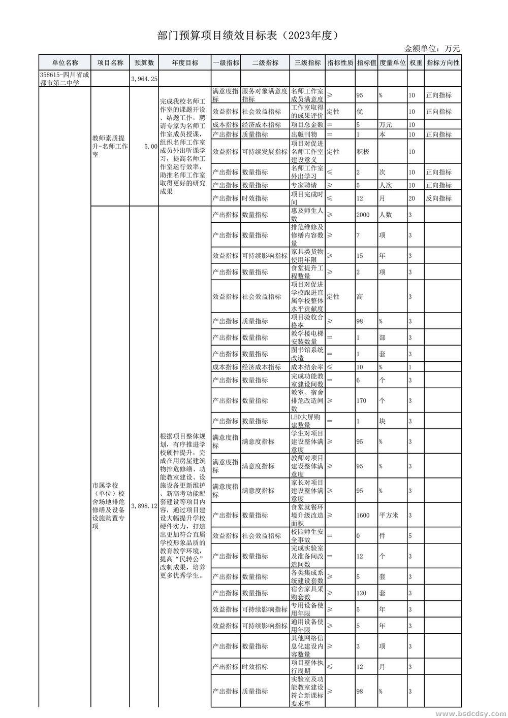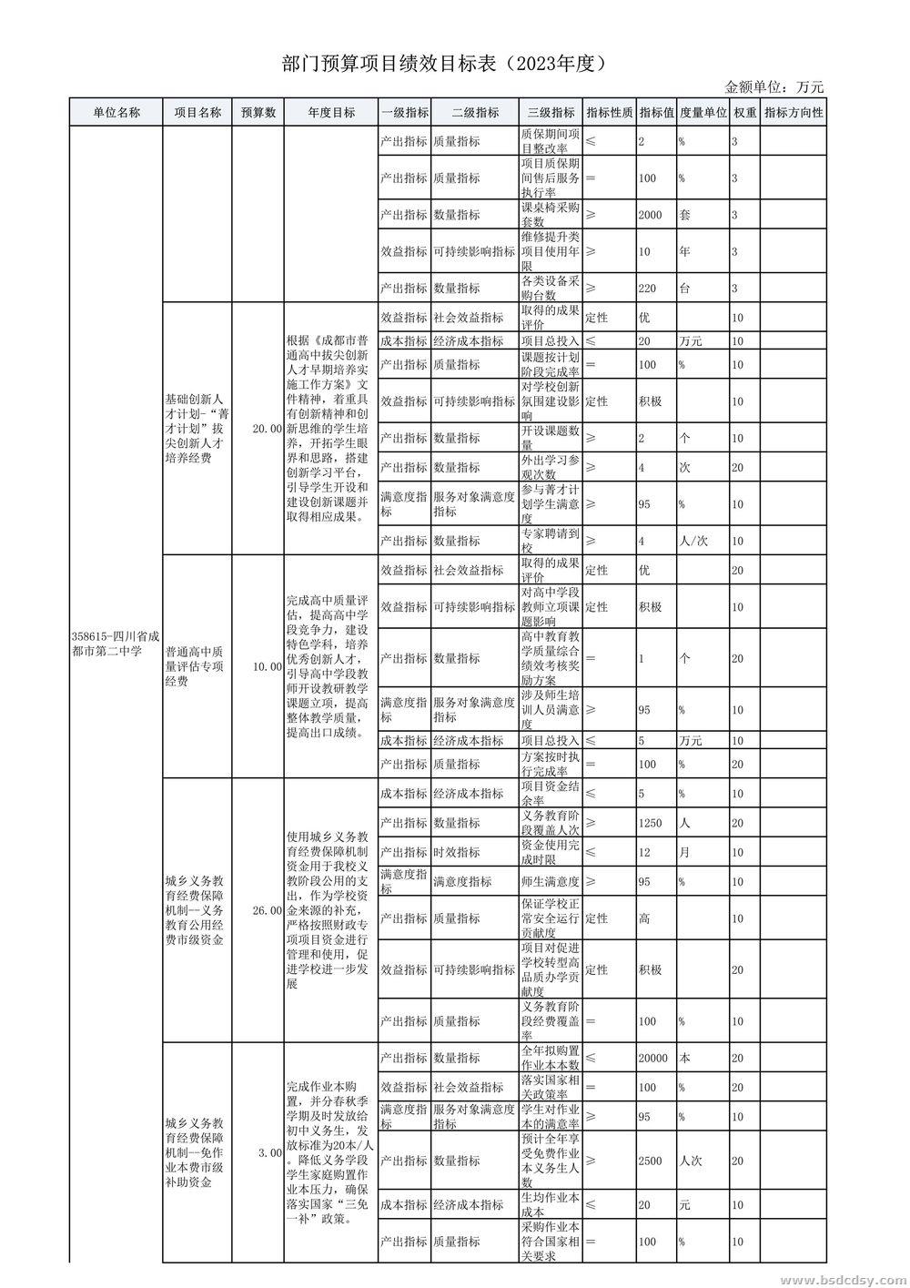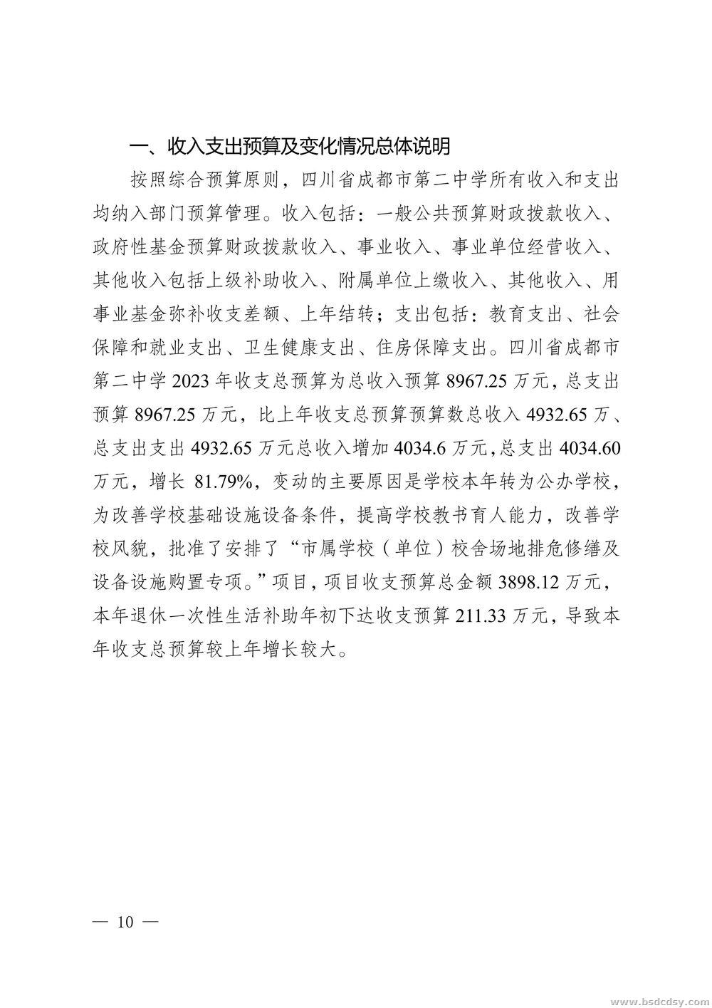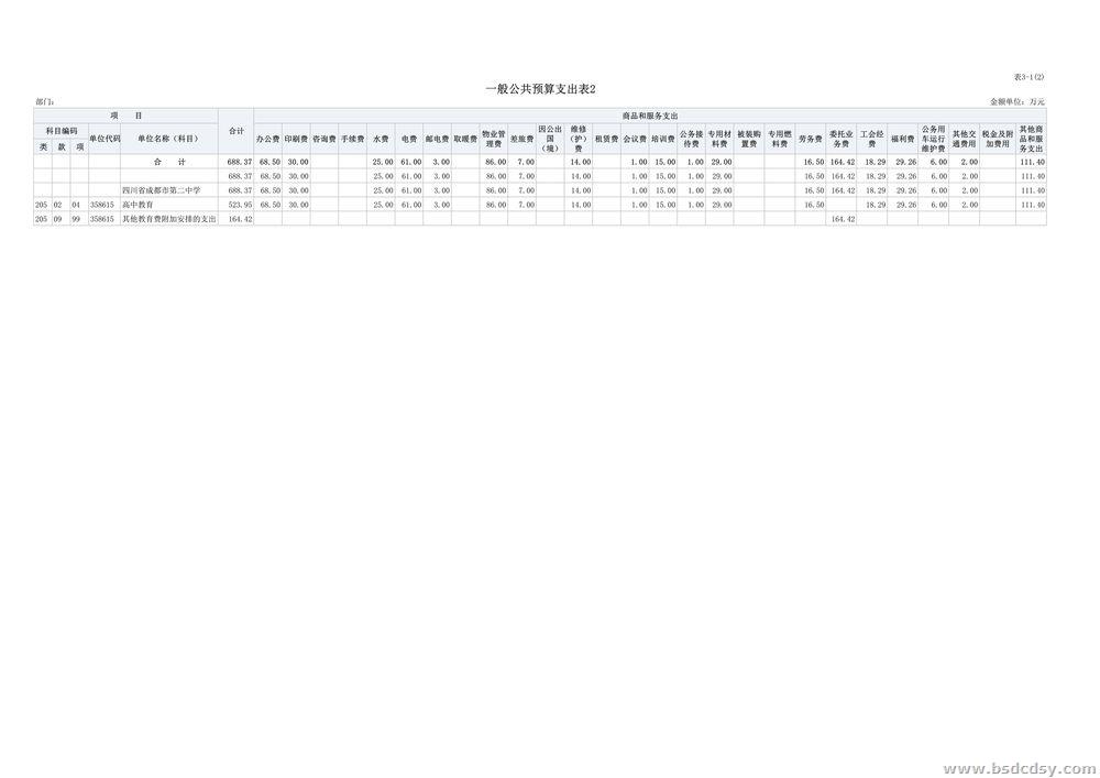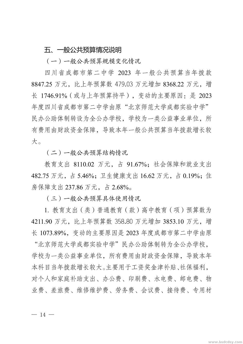 四川省成都市第二中学2023年部门预算