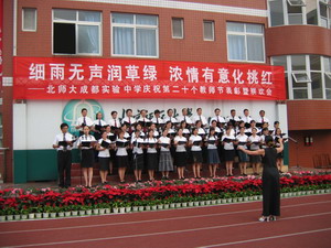 9月10日,是我国第二十个教师节,我校联合社区共同举办了名为“细雨无声润草绿,浓情有意化桃红”文艺汇演活动暨全校优秀教师表彰大会。教育局杨兴平副局长,教科文卫体工会缪晓玉主席光临本次活动并致贺词,学校周边友好单位领导78086部队皮康莉副政委、书院街街道办事处黄安主任、昭忠祠社区童德荣书记、交警五大队干明德大队长和我校原二中童平章老校长向受到表彰的“三育人、为人师表”教师和先进集体表示热烈的祝贺,并与全体师生共同热烈庆祝了这一节日。活动中昭忠祠社区、学校退协和我校师生同台演出,把庆祝活动推向了高潮。