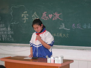 3月9日下午,我校各班在教育处、团委的要求下,又分别开展了主题统一,形式多样的主题班(队)会,其中高中部的主题是“我最钦慕的一位女性”;初中部则以队会“五个一(给身边的女性唱一首赞歌,送一份礼物,说一句祝福,做一件好事,写一封家书。)”为主题进行。学生们通过这些活动,进一步提高了尊重女性,关爱他人,做一名具有文明素养的中学生的意识。