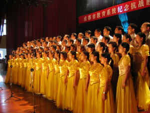 我校教职工合唱队参加了成都市合唱协会和成都市科教文卫体工会联合举办的“纪念抗战胜利60周年和世界反法西斯战争胜利60周年”合唱比赛