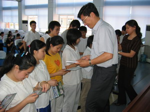 我校首届高中毕业生举行毕业典礼。2005年6月6日下午2:00我校改制后首届毕业生在学校学术报告厅举行了毕业典礼,学校领导、年组教师和高二OO五级全体学生参加了此次仪式。毕业仪式分两部分进行,首先进行的毕业典礼,学校校长刘增利向全体毕业生致辞……希望他们能在未来的旅途中走好每一步,“踏踏实实做人,扎扎实实做事”……;德育副校长王延玲、教学副校长张玉萍、教师代表敖德兵分别向学生表达了祝福与希望;彭艳同学代表全体同学发言,“……感谢母校为我们的成长提供了各种优质的服务,感谢全体教职员工与我们风雨兼程、同舟共济走过了三年,感谢父母……”;随后学校领导向他们颁发了毕业证书、赠送了毕业纪念卡和毕业照。全体学生还向“手拉手”学校捐赠了校服、文具等用品。毕业典礼结束后,由年级组长李俭慧老师做高考动员。全校师生共同祝愿他们在高考中取胜!