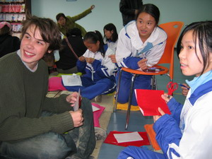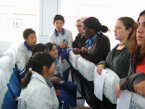 11月14日我校举行了2005年海外学年联谊活动。中午1点欢迎仪式正式开始,首先刘增利校长致欢迎辞,接着由海外学年代表发言。整个活动分为课堂交流、中国传统文化、歌舞互动、活力青春四个部分,中美学生在学习的氛围中进行了友好的交流。海外学年联谊活动为中美青少年之间的文化交流与沟通搭建了平台,增进了彼此间的了解和友谊。