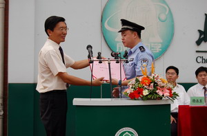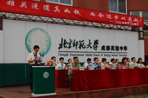| 2006年9月1日上午,全校师生集会举行了主题为“雄关漫道真如铁,而今迈步从头越”的2006—2007学年度开学典礼。首先刘增利校长介绍了主席台就座的来宾、中层以上干部和特级教师,并发表新学年致辞,在致辞中刘校长回顾了学校改制四年来全校师生所付出的艰辛和取得的成就,并明确表态:“我们将不辱使命努力实现‘办好一所学校,服务一个地区’的目标!”刘校长对“如何进一步提高高中教学质量”进行了解读,并倡导全校师生进一步推动“学校‘和谐’文化的建设,用我们的言行来涵养学校的和谐文化”,以激励全校师生继续努力工作和学习,同时也对工作和学习提出了严格的要求并寄予殷切的希望,“不能满足于昨日的成绩,要面向明天,抓住今天”。开学典礼上,我校还举行了法制副校长聘任仪式,书院街派出所副所长魏柯和交警五分局一大队警长李勇分别被聘为我校法制副校长,刘校长为他们颁发了聘书。最后,高、初09级新生进行了军训成果汇报表演,八个军训方队进行了整齐庄严的队列展示,学生们精神抖擞,英姿飒爽;军体拳、徒手操、倒功等技能展示,每一项汇报表演都精彩纷呈,展现了新时期青少年的青春与活力。全体师生和家长代表对本次军训成果都给予了充分的肯定。 | |