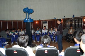 为落实素质教育要求,开展综合实践活动,教育处和地理教研组于4月12日下午共同组织了高2008级、高2009级部分天文爱好者85人到四川大学附属中学“国家天文台基地”进行了参观学习。 本次参观学习活动是“天文台基地”自4月6日正式挂牌以来接待的首批外来参观学习者,活动得到了“基地”肖老师的大力支持。活动分为三个部分,第一部分是在天文教室学习有关天体及天球的知识,由肖老师运用先进的天球仪对学生进行理论培训:天球仪的使用,在天球仪上初步掌握天像观测的对地、对日、对时操作及方法,让学生知道在什么地点、什么时间可以看到什么样的星空。肖老师还结合课本知识进行了要点讲解。第二部分是参观天象馆,天象馆逼真的模拟效果让同学们大开眼界,它可以让你站在地球的任何地方观察任何季节的天象,肖老师让参观者享受了在一般纬度和南北极、赤道等不同地点观察宇宙的无穷乐趣,最后重点落在了4月12日在成都能观察到的北斗星、狮子星座上。第三部分是参观天文望远镜,让同学们第一次零距离接触长1.8米、口径0.25米的天文望远镜。 本次活动虽然时间较短,但给同学们留下了深刻的印象,特别对那些今后有意走向天文研究的同学来说是一次激发热情的启蒙过程。 |