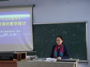 金秋十月,成都市中小学教师继续教育办公室在成都大学教师培训中心艺术楼,举办了全市农村骨干教师音乐课堂教学培训。北师大成都实验中学艺术教育办公室副主任蔡怡老师,应邀在培训会上作专题讲座。 蔡老师讲座的题目是“中学音乐教学中唱歌课的教学探讨”。讲座共分三个部分,历时三个小时。讲座中运用了众多实例,深入浅出,并配合多媒体的幻灯、图片、影像资料。讲座生动具体,给参加培训的教师很大启发。不少教师说:新课标要落实在课堂上,这些实例非常有用,学得到,用得着。不少教师在讲座中提出了自己在教学中的问题在课堂上共同交流探讨。许多教师反映,希望这样的讲座能够给在农村教学的老师们更多的帮助和支持。 培训结束后,不少教师留下了蔡老师的联系方式,希望能有更多的机会交流。 |