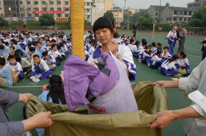 5月16日上午,我校全体教职员工和学生在操场举行了赈灾捐赠活动。学校工会根据15日工作会议的安排部署,首先接收了老师和同学们捐赠的衣物、棉被等生活用品。满满二十袋物品,共计近2吨。 在活动仪式上,大家首先对地震中死难的同胞默哀一分钟,然后高声齐唱了《义勇军进行曲》。刘增利校长就赈灾捐赠的意义发表了讲话,学校党政工代表和学生会会长都宣读了倡议书,号召全体师生众志成城、抗震救灾。在仪式上,师生们进行了现场的捐款活动,投入捐款箱一笔笔的爱心捐款不时引来全场的阵阵掌声。在活动的最后,初中各班举行了“红五月歌咏会”齐唱比赛,同学们激昂的歌声展现了“中国人坚强不屈的精神风貌”。 截止中午12点,工会统计我校共捐赠衣物、棉被等4101件,现金66315.20元(含30元港币)。部分物品已有志愿者车队直接运往灾区,其余捐赠品我校也已转交红十字会。我校的捐赠活动还将继续进行。 |