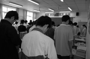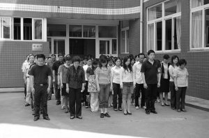 5月19日14:28分,我校全体师生为汶川大地震遇难者默哀三分钟。成都市上空回荡着不绝的汽笛声……