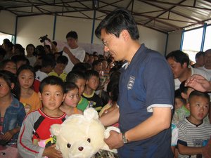 6月1日,带着全校师生对灾区小朋友的深情厚谊,刘增利校长等一行6人到地震灾区彭州市磁丰小学慰问师生,他们带来的慰问品装了满满一中巴车,有初一、初二同学们捐献的玩具、学习用具和近千册图书。 一位参加此次活动的学生写下了如下一段日记: 今天是“六一”儿童节,我跟着学校的捐赠队伍及其他献爱心的叔叔阿姨小朋友们,随成都电视台去彭州磁丰小学,把书本、文具、玩具等礼物送给灾区小朋友。祝福灾区小朋友节日愉快!希望他们早日走出地震的阴影,坚强地生活! 一路上,越往前走,看到情景越让人难受:不少房屋损坏严重,都不能住人。有的在家门口,有的在大块空地上,搭起了帐篷。帐篷的颜色多数军绿色的,有的写着“救灾”;最显眼的是一些白色的帐篷,上面有图案,同行的姜老师告诉我那些帐篷是沙特阿拉伯捐的,上面的图案是“新月”标记。还看见在灾区紧张搭建活动板房和站在各个路口值勤的解放军叔叔,很感动!到了学校,拿到礼物,灾区的小朋友很开心! 妈妈说:“青山依旧在,房屋却损毁;校舍虽损毁,我们在一起”。 大人们说:“川人从未负国,国人绝不负川!”,在全国人民的支持下,灾区人民正在建设美好家园!相信再过几年,四川会建设得更美好!不负“天府之国”美誉。在灾难面前,我们中华民族,紧紧团结在一起,万众一心,众志成城,抗震救灾。 中国加油!四川加油!灾区小朋友加油!我们是祖国的未来!未来的祖国还需要我们建设!我们要好好学习,报效祖国! |