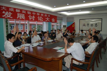 在党的87周年生日前夕,学校党总支召开了组织发展讨论大会,讨论李红娟同志的发展问题。 大会在庄严的国歌声中开始,理科支部组织委员向国兴同志首先向与会的50多位党员、入党积极分子汇报了李红娟同志的政审情况。党总支组织委员魏月香同志介绍了群众座谈会的情况,并介绍了我校目前党员整体情况。李红娟同志宣读了入党志愿书后,介绍人敖德兵和周松林同志介绍了相关情况。 在随后的集中讨论中,大家踊跃发言,畅谈日常生活、工作中的李红娟同志,发表自己的意见。在随后的大会表决中,以全票通过了李红娟同志的入党申请,正式吸纳李红娟同志为中共预备党员。 党总支宣传委员刘增利校长最后做了总结发言。大会在雄壮的国际歌声中结束。 |