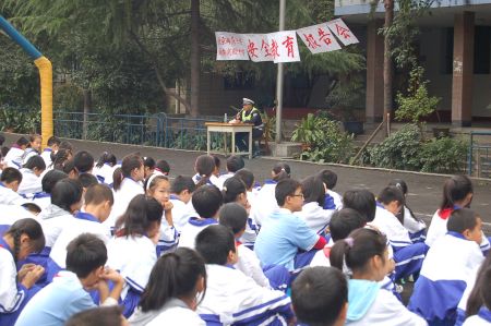 定期对学生进行安全教育是我校的传统,特别是对起始年级和低年级学生加强交通安全教育尤为必要。根据成都市教育局公布的《学生意外伤害事故》中显示,交通事故造成学生伤害的比例非常大。我们生活在大都市中,每天都要与交通工具打交道,如何做到遵守交通法规、如何更有效的保护自己,解决这些问题都需要对学生进行相关教育,让学生知法守法,培养他们自觉遵守交通法规的良好习惯。为此,学生处于10月22日下午,专门邀请了片区交警对我校初一、初二和高一的全体学生进行了专项安全教育。