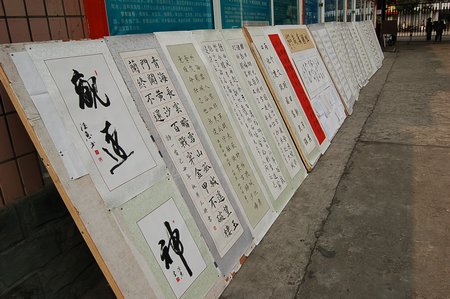 为庆祝建国六十周年,2009年9月28—30日,我校学生处及艺术教育办公室成功组织举办了书法大展赛。这次书法大展赛书写的内容,主要围绕国庆这个主题,将古今爱国经典诗词用书法的形式表现出来,在书写和展出过程中,对学生都有很好的教育。这次大展赛收到的作品大多都是精品,书写风格以楷书、隶属和行书为主,总体水平比以往有了很大提高。 这次展出时间虽然只有三天半,但是给全校师生和路过的校外人员都有了很大的影响:既展示了我校书法艺术教育的成果,也对学校进行了较好的宣传。 庆祝建国六十周年书法大赛获奖名单 毛笔类: 一等奖:王伟鉴 郭媛媛 李默 二等奖:姚宇希 王泓力 刘和畅 武周歌 李昕彧 陈智文 三等奖:蔡玉婷 侯富博 闵敏 谢佳 严小艺 梁亚玲 蔡灵松 卢国栋 硬笔类: 一等奖:苏天月 二等奖:严小艺 隆艺竹 三等奖:钟晓霞 周嘉文 罗诗佳 辜君竹 教师优秀作品奖:邱德惠 余华忠 北师大成都实验中学 2009-10-14 |