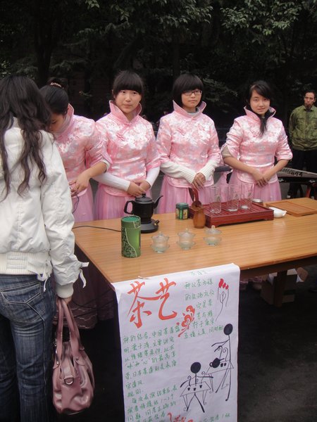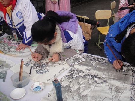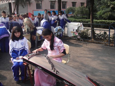 “半部《论语》治天下之说由谁而来?……”“ 首先,我用茶勺从茶荷中取少量茶叶放于托盘中,请各位欣赏,茶道上称之为‘赏茶’。赏绿茶要看‘三绿’,即:干茶绿、汤色绿、叶底绿”。 下面我用凤凰三点头的方法向杯中注水……”“父母教, 须敬听。 父母责, 须顺承。哇,这幅字写得好漂亮”…….昨日下午,在我校新华校区操场内,或品诵经典,或茶艺表演,或琴棋书画,或载歌载舞,或手工制作。2000多名师生齐聚校园,热情洋溢参加“国学”游园活动。据悉,中学校举办这种大规模的“国学”游园活动,这在我市尚属首次。 游园活动丰富多彩,学校整个操场分成竞答、文艺、手工、书画、茶艺、运动6大区域。在竞答区域前,许多学生围着写有国学经典方面的知识问答的纸条,或轻声诵读,或冥思苦想。记者看到,纸条上写着许多诸如“《胡笳十八拍》琴曲讲的什么故事?”“你会背《弟子规》吗?”“《繁星》《春水》是谁的作品?等竞答题。 在茶艺区域前,人头攒动,师生们目不转睛地看着茶艺表演。在悠扬的乐曲声中,几位女生身着旗袍,正将茶斗按在瓯沿,用茶耙把茶叶慢慢地送入盖瓯中。“这叫‘悬壶高冲’……烹来勺水浅杯斟,不尽余香舌本寻,七碗漫兮能畅饮,可曾品过铁观音?”在整个茶艺表演过程中,清悠的传统音乐、适时精辟的茶艺解说使师生们在精心营造的优雅环境氛围中,得到了美的享受和情操的熏陶。 语文特级教师章老师说:“中学生学习国学是非常必要的。学校的老师要积极引导学生学习国学,学好国学,引导学生以经典替代或充实时下流行的“快餐文化。这对学生的终身发展有极其重要的意义。” 学生处范主任也向记者表示,本次活动的主题是“品国学经典,展丰瞻才情,建书香校园,做阳光少年。今天的国学游园活动很有意义,我们以后还要继续办下去。” |