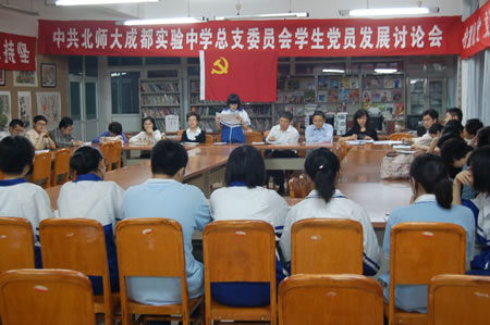 2011年5月13日晚,我校党总支召开了组织发展讨论大会,讨论闫雪娇同学的发展问题。 大会在庄严的国歌声中开始,党总支组织委员魏月香同志首先向与会的党员、入党积极分子、学生代表汇报了闫雪娇同志的政审情况,并介绍了我校目前党员整体情况、群众座谈会等情况。闫雪娇同志宣读了入党志愿书后,介绍人李红娟和高仕瑜同志介绍了相关情况。 在随后的集中讨论中,大家踊跃发言,畅谈日常生活、工作中的闫雪娇同志,发表自己的意见。在随后的大会表决中,以全票通过了闫雪娇同志的入党申请,正式吸纳闫雪娇同志为中共预备党员。 党总支宣传委员刘增利校长,党总支副书记杨延凤最后做了总结发言。大会在雄壮的国际歌声中结束。 闫雪娇:女,汉族,1993年4月14日出生,现就读于我校高2011级三班,担任校团委副书记、班长。2009、2010年连续两年被评为“成都市优秀学生干部”,2011年被评为“四川省三好学生”。2010年4月提交入党申请,2010年5月被确定为入党积极分子。 |