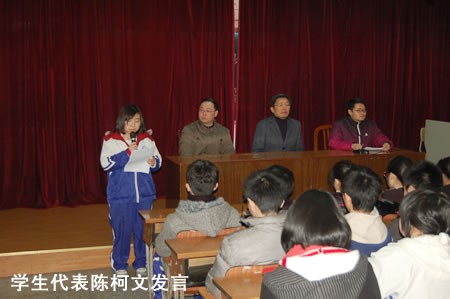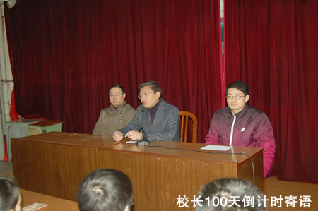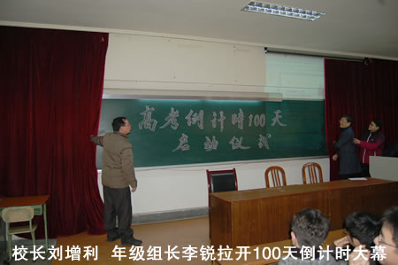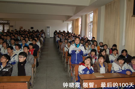 【高2012届学生 吴凡雨讯】2012年2月27日,一个既寻常又不寻常的日子。对大多数人而言,这不过是个普通的星期一;但对高三学生来说,这一天意味着离高考仅剩了最后100天。因此,这一天早上8:30~9:00,在阶梯教室中举行了由校长刘增利、校长助理张文勇和高三年级组长李锐共同主持、全体高三学生共同参与的“倒计时100天揭幕仪式”。 仪式在“阳光总在风雨后”的曼妙歌声中开场,首先由学生代表陈柯文同学发表讲话。她声情并茂的演说奠定了全场激扬的基调,打动了不少同学的心;而一句“正如哲学中量变引起质变的道理”,充分阐释了“学以致用”的内涵,博得了满堂彩。在掌声送下陈柯文之后,同学们迎来了本次仪式的主题——刘校长的讲话。一如既往,刘校长的声音依旧是沉稳从容,使人感到心里踏实;然而这沉稳的声音却承载了一个并不沉稳的话题,这样一来反倒更叫人心潮起伏,久久不能平息。刘校长说,他最爱读高三学生们写的班级日志,因为脱离了往年的稚气,经历了十二载的积淀,日志中或写自己的人生感悟,或写自己的学习心得,还有人写下校园生活的趣闻调剂日益增大的压力——都显得那样真切感人。他期盼高三的同学们能在良好的心态引导下,走过一段有压力也有阳光的高三时光,并在高考一役中取得最后的胜利。 之后,伴随着张文勇助理一声令下,李锐老师和刘增利校长一道分别拉开了左右两片幕布,呈现出幕后黑板上写下的“倒计时100天揭幕仪式”几个硕大的粉笔字。仪式随之进入高潮:银幕缓缓落下,一行行誓词赫然出现在屏幕上;全体高三同学在钟晓霞同学的领誓下,共同发出庄严的宣誓:为了父母的寄托,为了老师的付出,我们,拼了! 仪式最终又在“阳光总在风雨后”的悠扬乐声中结束,同学们回到教室,又开始了新一轮的冲刺。所谓“革命尚未成功,同志仍需努力”,希望高三的“战士”们不要被“只有100天了”所吓倒,只要保持高昂的斗志,拥有自己的学习计划并能坚定不渝地执行,那么相信胜利一定属于了不起的你们! |