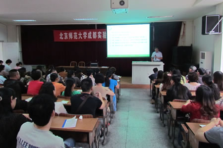 2012年9月14日,我校召开了初一年级学生家长会。会上,刘增利校长和下年级组干部王枝国主任向学生家长简要介绍了我校基本情况并就家庭教育方式向新初一家长提出建议。 本次家长会旨在增进家校双方的交流,增强家长对学校教育教学工作的了解和信任。会上,学校领导向家长们介绍了我校的培养目标与课程建设,初一新生面临的问题与学校的应对方法,学校的德育工作体系建设以及孩子进入初中学习所要关注的问题等情况。其间,刘校长指出“教育就是培养良好的习惯”,并强调家长与老师的配合对学生有着及其重要的影响。随后,王主任向各位家长介绍了初一年级的师资力量,强调这是一支年富力强的队伍,将为孩子全面、有个性和谐发展全方位护航。会后,初一年级各班由班主任主持分班召开了班级家长会,就班级管理与建设问题做了深入探讨。 此次家长会,不仅让家长对学校有了更深入的了解,更是以专家讲座的形式与家长们分享宝贵的教育经验,帮助家长树立正确的教育观,最大限度地发挥家校共同体的作用,促进孩子们的成长。我们相信,在学校、家长与学生的共同努力下,北师大成都实验中学的学生一定会在自信、成功、快乐中得到长足发展。 |