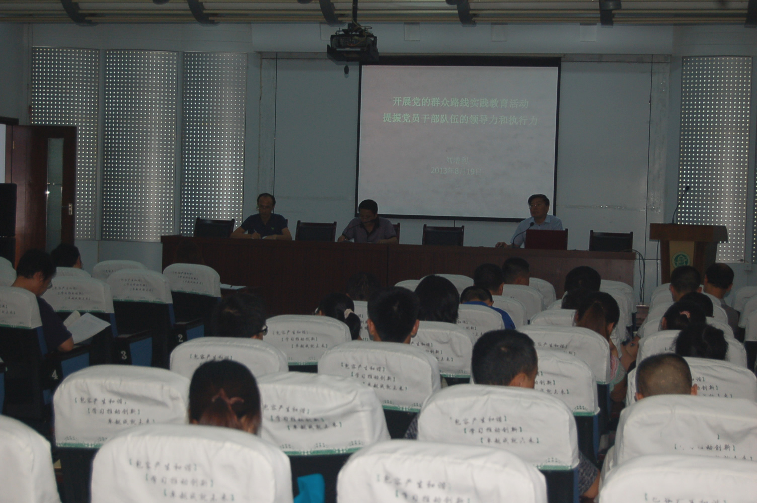 【党总支 讯】2013年8月19日,学校党总支召开党员大会,就开展党的群众路线教育实践活动进行动员。党总支书记刘增利同志做了《开展党的群众路线实践教育活动,提振干部队伍的领导力和执行力》主题动员报告,他围绕为什么要开展党的群众路线教育实践活动?怎样开展群众路线教育实践活动?对开展群众路线教育实践活动的要求等三个问题,结合学校的工作进行了动员。他指出“四风”问题在学校表现为:形式主义——花架子,不实在;官僚主义——不深入,拍脑袋;享乐主义——没功劳,有苦劳;奢靡之风——走过场,讲排场。要求党员,特别是党员干部一定要以这次教育活动为契机,落实现代学校制度,促进学校管理创新。在学校迎来百年华诞,即将翻开新的一页的时刻,党员领导干部要牢记使命,服务师生,实现学校内涵品质发展。