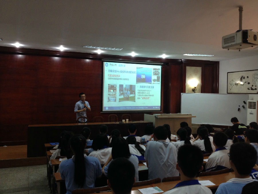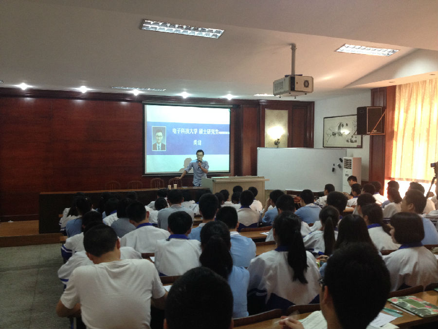【记者团 赖世思琪 讯】2015年4月29日下午,我校高一年级在阶梯教室里倾听了电子科技大学硕士研究生周诣学长的演讲。