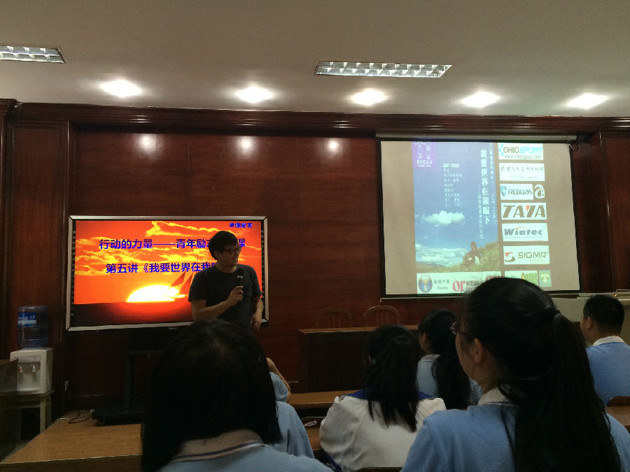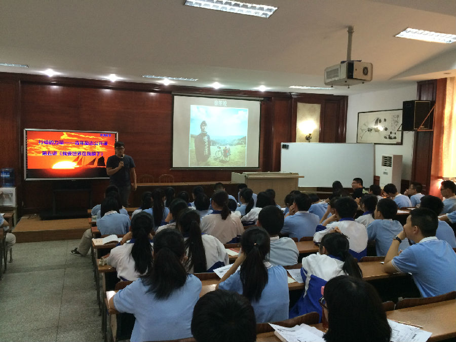 【记者团 王瀚尧 讯】2015年5月13日,我校高一年级在阶梯教室倾听了来自宝岛台湾的单车骑游者徐笙竣的演讲“我要世界在我眼下”。