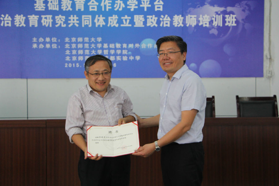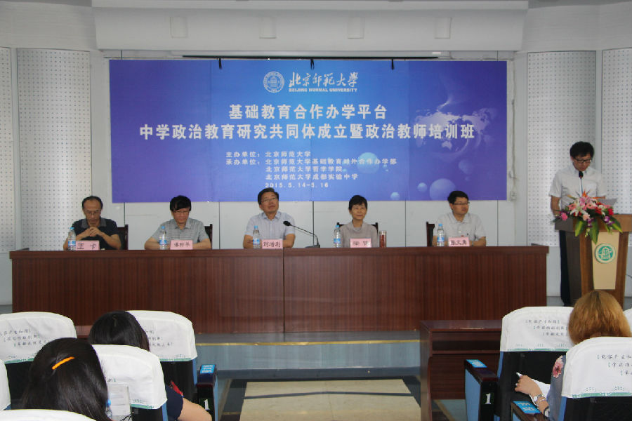 【政治组吴鸿讯】2015年5月14——16日,由、北京师范大学哲学学院主办,由我校承办的基础教育合作办学平台中学政治教育研究共同体成立暨政治教师培训班在我校举行。