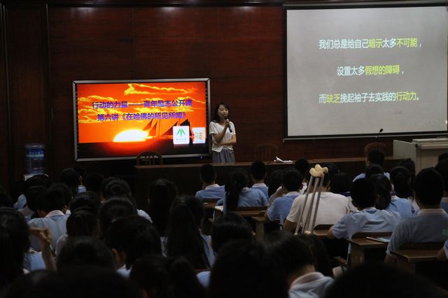 唐学姐给我们分享的故事并不长,但是却引发了大家深深的思考,比如蔡柳佟同学的提问:“如果你回到我们这个年龄,这时候你有一个疯狂的点子,但是父母和老师都反对,你会怎么做?”蔡柳佟同学的问题无疑是高一年级全体学生共同的心声,然而唐学姐给予了我们最好的回答:“将远大的梦想暂时搁置,等到自己羽翼丰满的时候再去实现。”然而想要羽翼丰满,必定要努力拼搏,这次讲座给予了我们很多启示,不仅仅是关于梦想,更重要的是让我们了解到,那么多优秀的人都在努力,我们有什么理由不去拼搏呢?就像唐学姐送给我们的话那样“拼搏是生活的常态,坚持梦想,青春无敌!”