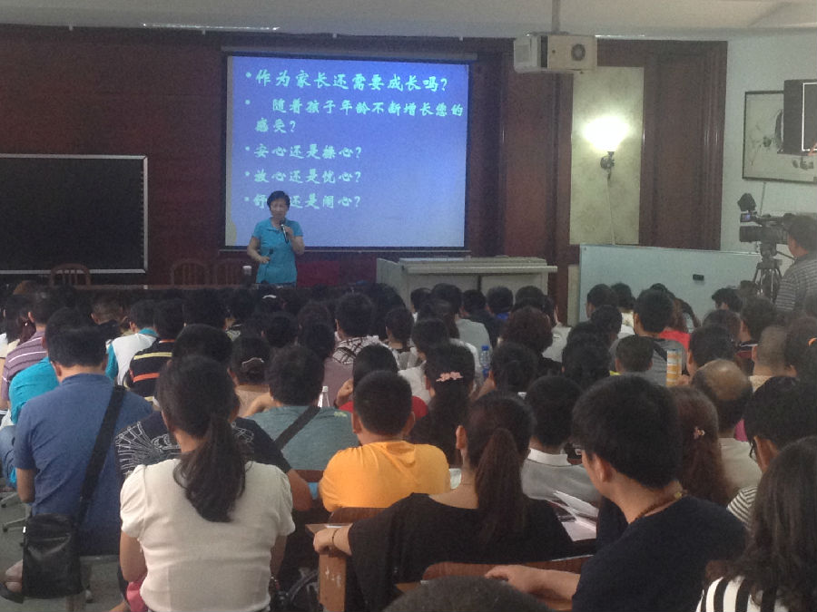 针对孩子升学后生活发生的巨变,张渝老师指出,家长要认识到家庭教育的重要性,要和孩子一起成长。张老师列举了家长们在家庭教育中的一些误区,给出了具有针对性的建议,她希望家长们能多观察孩子的情绪和行为,多作正确的示范,给孩子合理的期待提恰当的要求。张老师更让家长们认识到:再不能用昨天的方法来教育今天的孩子,并期待他适应明天的生活。