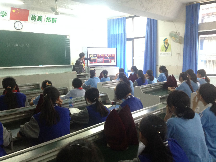 许老师用PPT向同学们生动的展示了黑板报的要领,如:排版、文字、图案及色彩。许老师通过丰富的案例对这些要领进行了详细的讲解,之后又让同学们以“中秋”为主题进行了黑板报设计的练习指导,同学们都很认真的学习讨论,并在纸上描绘展示出自己的构思。