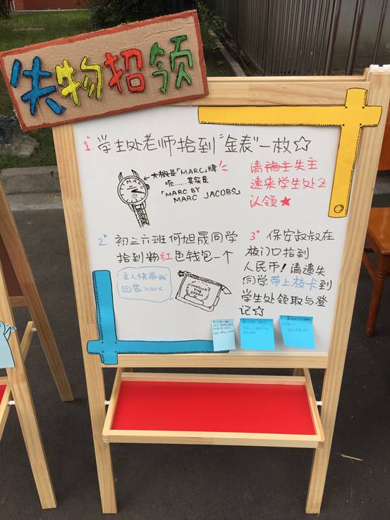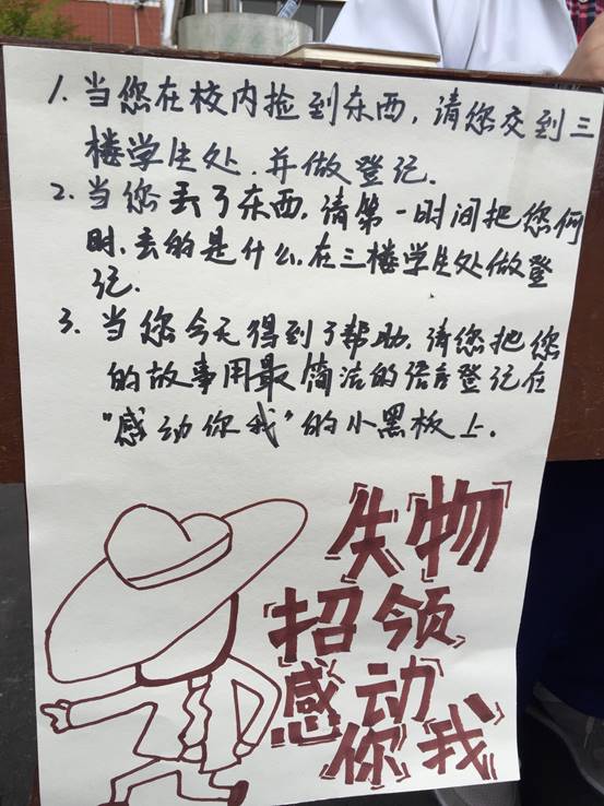 接下来,隆重给大家推荐的是我们的“失物招领”和“感动你我”活动,塑造文明、健康的学生风貌,大力弘扬中华名族传统美德,才短短一早上,咱们北师大成都实验人已经开始行动起来,小编很是骄傲啊~