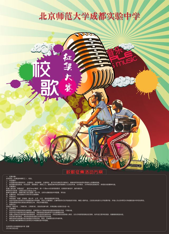 5、 最终采用作品的著作权及使用权归学校所有,歌词,作曲署名权归作者所有。