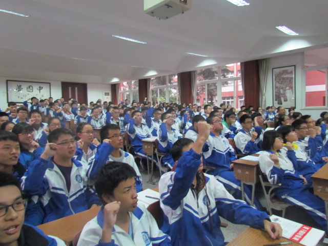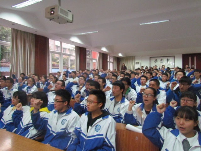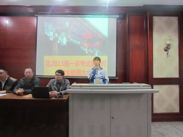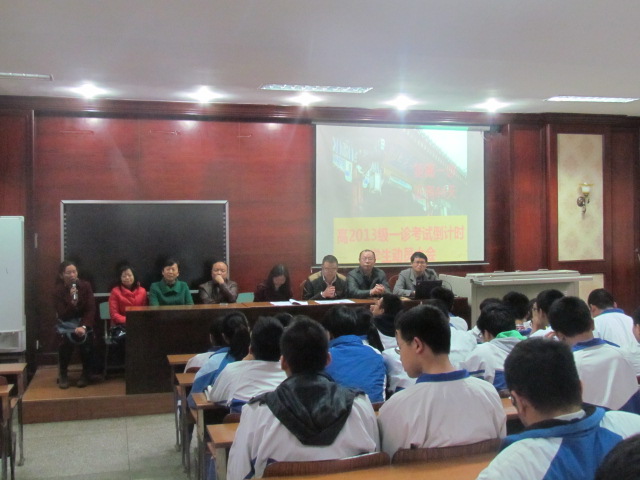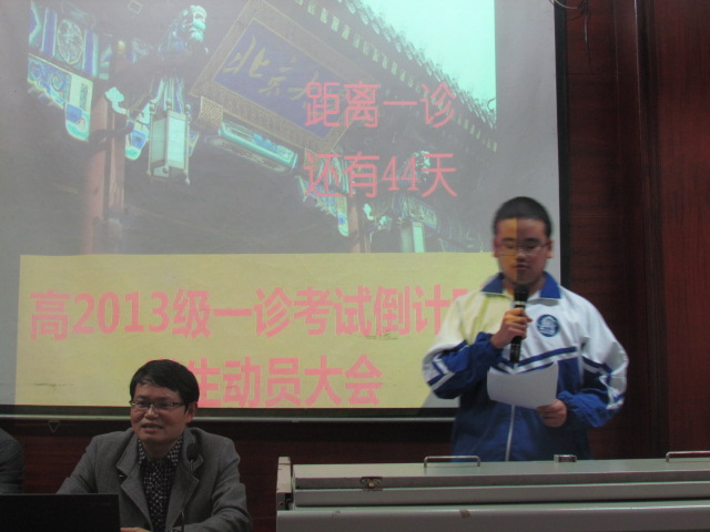 2015年11月14日17时,在距离成都“一诊”考试44天、距离高考206天之际,我校高三年级全体同学在阶梯教室举行了高三“一诊”考试动员大会。