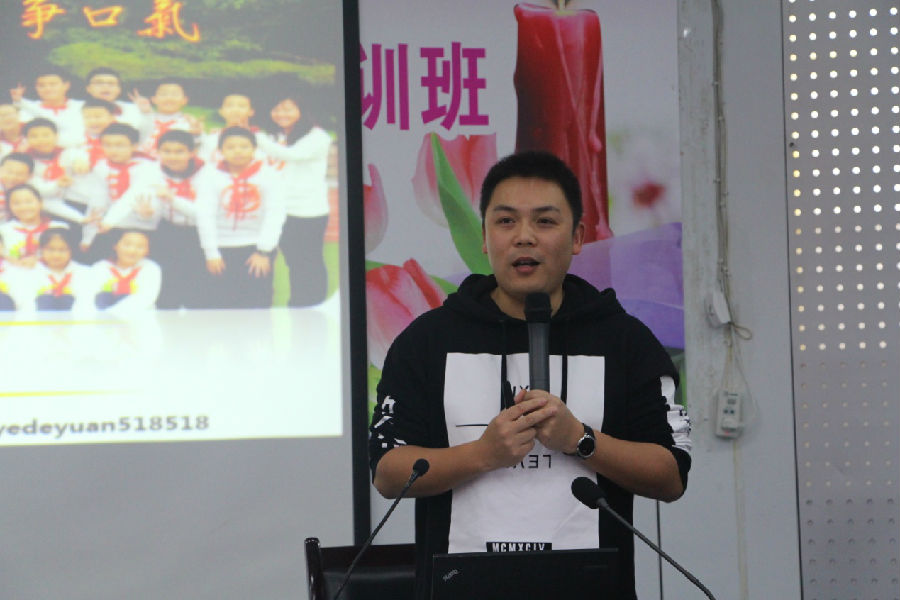 (叶德元老师做“打造一间幸福的教室”的讲座)