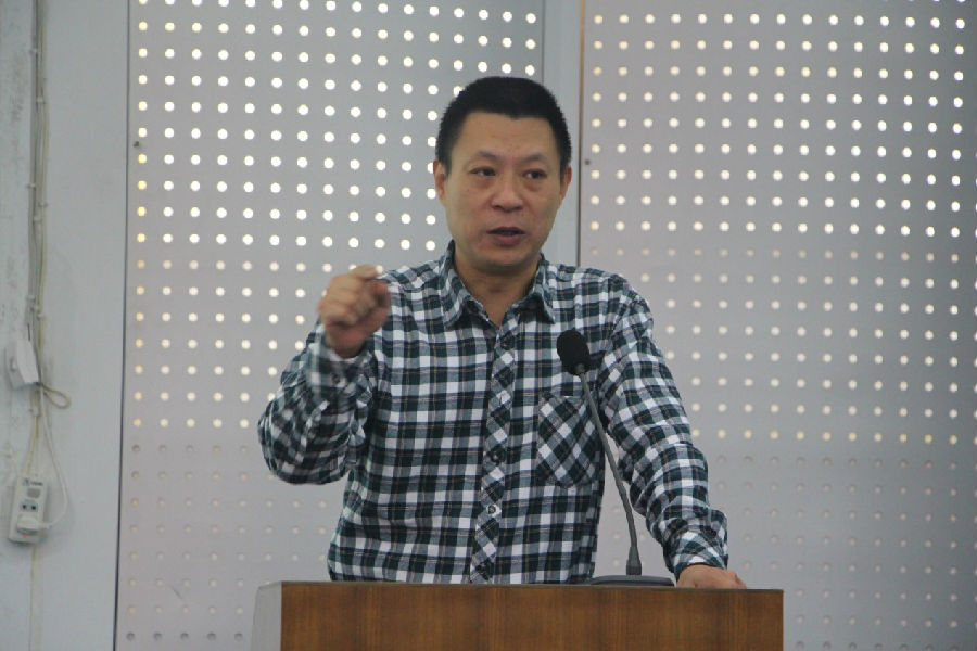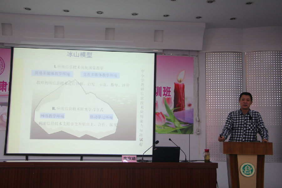 (朱京曦老师做“农村如何利用现有条件进行信息化教育教学”的讲座)
