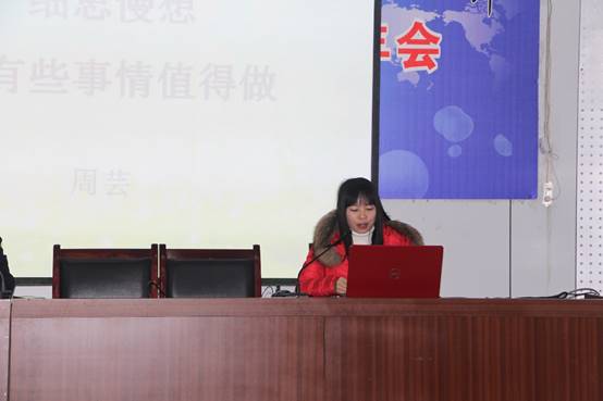 周芸老师作了“细思慢想,总有些事情值得做”的主题总结。她认为,班主任在,学生能做好,是一个基本合格的班主任;班主任不在,学生能做好,是一个优秀的班主任;班主任在,学生仍不能做好,则是一个失败的班主任。她从班干部选举,教室布置,图书角装饰,文化墙布置,学生活动,家校共育手册等多方面总结了这一学期的工作。也为我们班主任的细致地开展工作提供了借鉴。