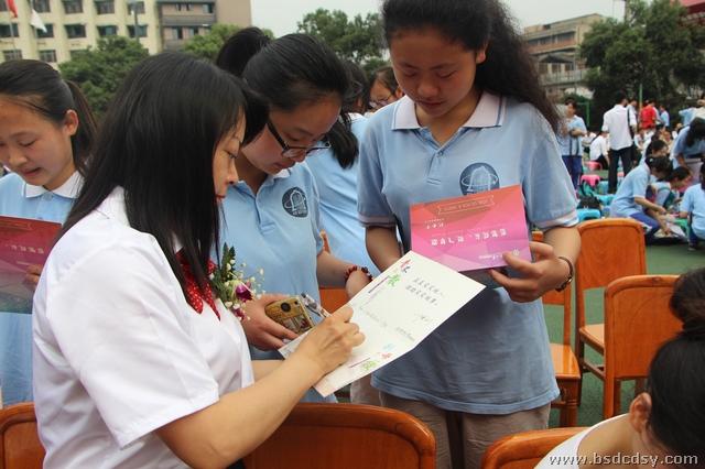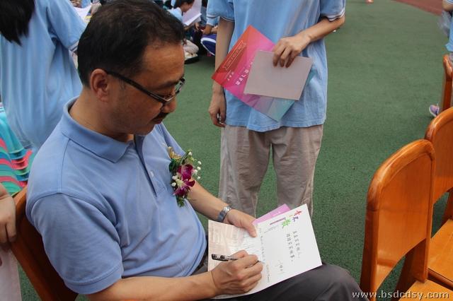 最激动人心的是献花、宣誓、颁发纪念册环节。学子们向老师们献上了祝福,感激的花朵,感谢老师在中学时期的悉心教导。在宣誓过程中,每个初三、高三学子带着包含的情感的举起了自己的右手,誓言中带着毕业学子对未来的希望以及对母校的感激。每一声,每一个字都带着对未来挑战的自信。他们会带着母校师生对他们的祝福,一直走下去。最后,由学校领导们为我们颁发毕业纪念册,刘增利校长对学子的寄语——真真实实做人,踏踏实实做事。这句话,会牢记于每一个学子心中,生生不息。