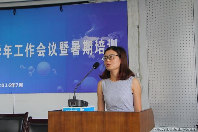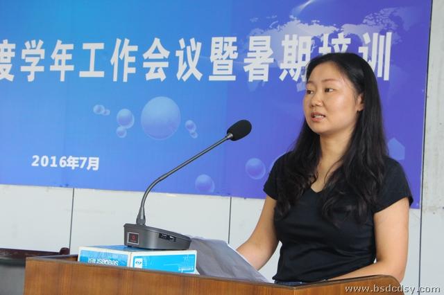 英语老师杨娟做《Just Run——2016-07典范英语外出培训心得》的发言