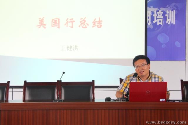 语文教师余福林以《游学归来啊哩哩——参加第二届中学生中华传统文化传承高端论坛纪实》为题分享了他带领直升年级学生组成的队伍参加由北京师大二附中、北京师范大学党委宣传部共同主办的以“家道共话”为主题第二届中学生中华传统文化传承高端论坛的美好时光,通过“专家讲坛”“学生论坛与互动活动”“参观考察”等活动,我校学生和来自内地、港澳台地区、新加坡等地的43所名校、200多名师生一起搭建起了学习、研究、分享、传播中华传统文化的舞台,与大家一起交流了对家文化的认识和感受,通过论坛和表演等形式很好的展示了开云手机登录入口的学生形象,受到了与会者的一致好评。舞蹈老师韦旭颖以《从无到有 从舞到优》为题分享了参加“北京师范大学基础教育合作办学平台2016年拉班动作教育课程研修暨主题舞谱培训”的感受,描述了一个“使孩子们在动作中身心平衡地发展。学会观察自己的身体,善待自己的身体,尊重别人的身体。学会在动作的表达中做独特的自己,做自然、自信、自在的自己”的美好愿景。政治老师王健洪代表赴美夏令营的师生以《美国行总结》为题,从政治篇:走过美国建国之路;经济篇:见证经济强国的辉煌;文化篇:走进美国人的日常生活;三个板块做了全面的介绍,让我们感受了美国的政治、经济和文化。英语老师杨娟以《Just Run——2016-07典范英语外出培训心得》介绍了她和王晓芳老师参加在北京由教育部人文社科重点研究基地---北京外国语大学中国外语教育研究中心牵头举办的第九届全国基础英语素质教育实验基地学术交流研讨会的感受。通过专家学术报告、实验基地校的经验分享和成果展示,以及典范英语小学初中示范课、首师大附中学生的课本剧表演等,通过活动她们进一步深入领略了典范英语的精髓,点燃了典范英语教学的心灯,为学校典范英语课程的规范开设获得了精神食粮。在新高三上课的陈新老师以《传承国学经典,延续中华文脉》为题对在沈阳参加的由中国教育学会高中教育专业委员会、辽宁省实验中学共同主办,台湾素书楼文教基金会协办的“满清文化” 国学夏令营的学习所得做了书面交流。