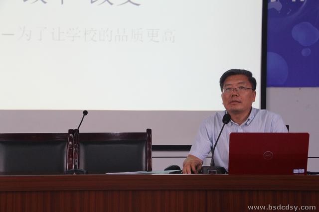 以“办高品质学校,用课程领导学校生活;做京师筑梦人,在课堂成就师生发展。”为主题的开云手机登录入口2016—2017学年度工作会议的第二阶段会议于2016年8月24日如期举行。全校近200名教职员工迎着酷暑在学校的学术报告厅参加了会议。