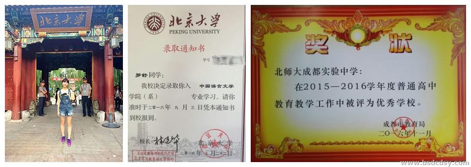 NO1.□2016年11月,我校荣获继2008年以来连续第九届的成都市高中教育教学表彰,理科实验班班主任化学老师陈莉被评为高2016届优秀教师,据统计,我校文科第一名罗舒同学被北京大学录取;第二名陈可依同学被浙江大学录取。理科第一名熊瑞霖同学被电子科技大学录取。