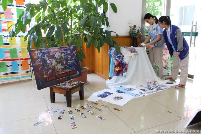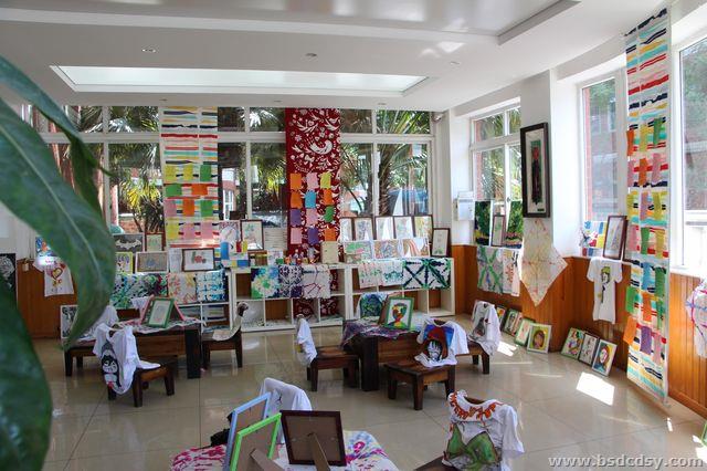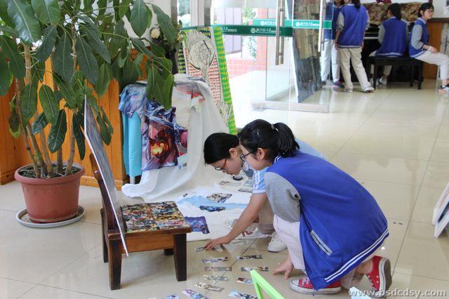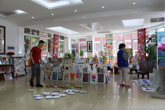 一开展,就得到广大师生的高度关注。图书馆书画展示墙和图书馆外半圆形展示大厅,布满了学生和教师们的各式书画作品。有周维和特级教师近4米长的横幅《醉翁亭记》,有学生手绘的各式T恤,还有大型的装置艺术展品,等等,琳琅满目,目不暇接。这里展览的是学生和老师们精心制作的艺术品,装扮出的是艺术的天堂,让参与者得到的是艺术的享受和快乐。