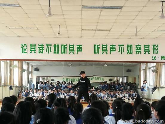 第一天共有8个舞蹈比赛。其中初一的一个男同学用他富有feel的街舞收获了一票粉丝。