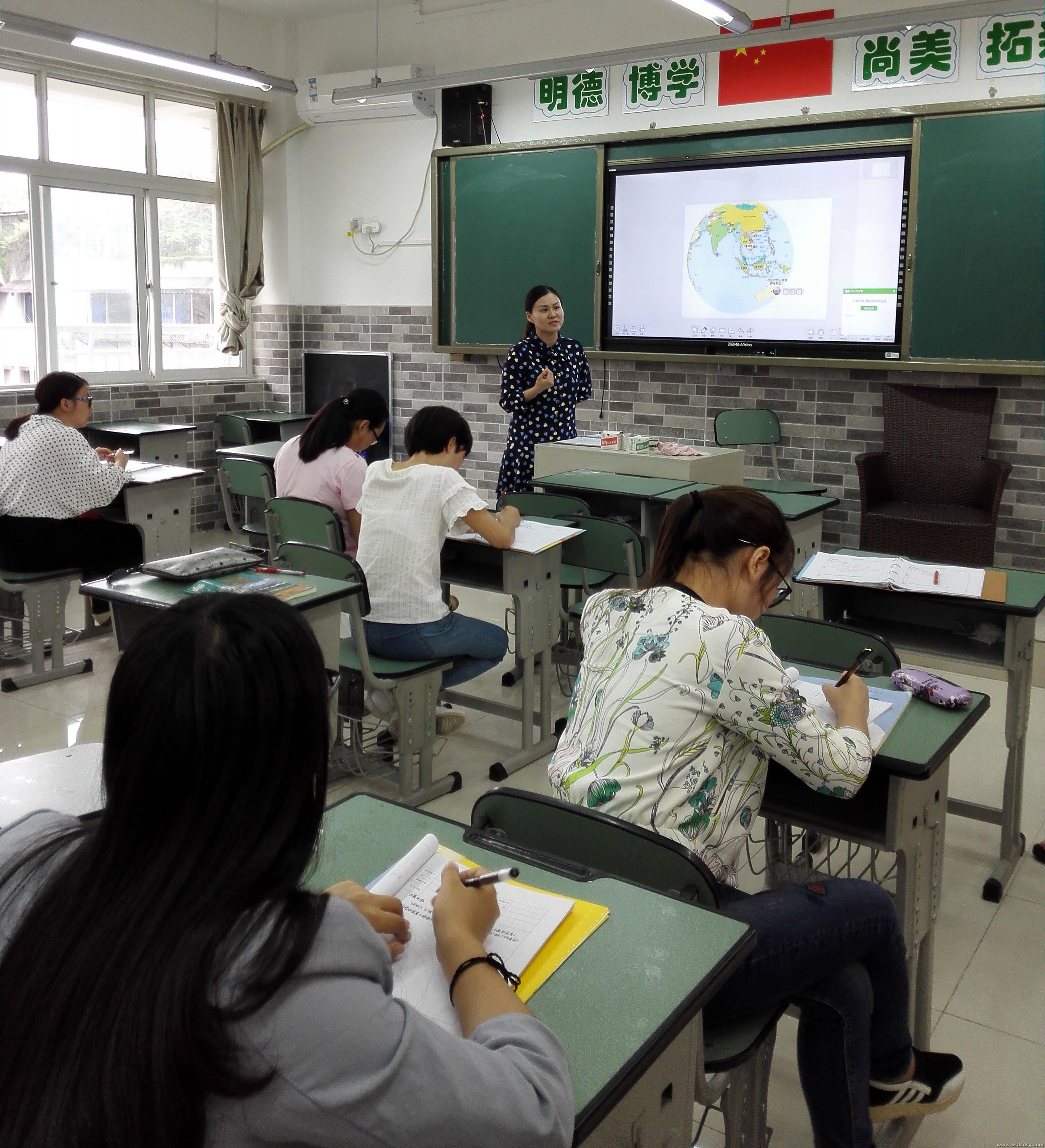 地理组老师们刻苦钻研,努力探索互动教学技术,凌洁老师在教研活动中为大家展示了电子白板如何在课堂上显现它独特的魅力,利用电子白板带领大家开展了一次身临其境的课堂研究。组内老师纷纷表示,灵活运用信息技术为设计轻松、愉快的课堂提供了便利,让教师更轻松地驾驭于课堂,让课堂教学不拘一格,给地理教学改革注入了新的活力。