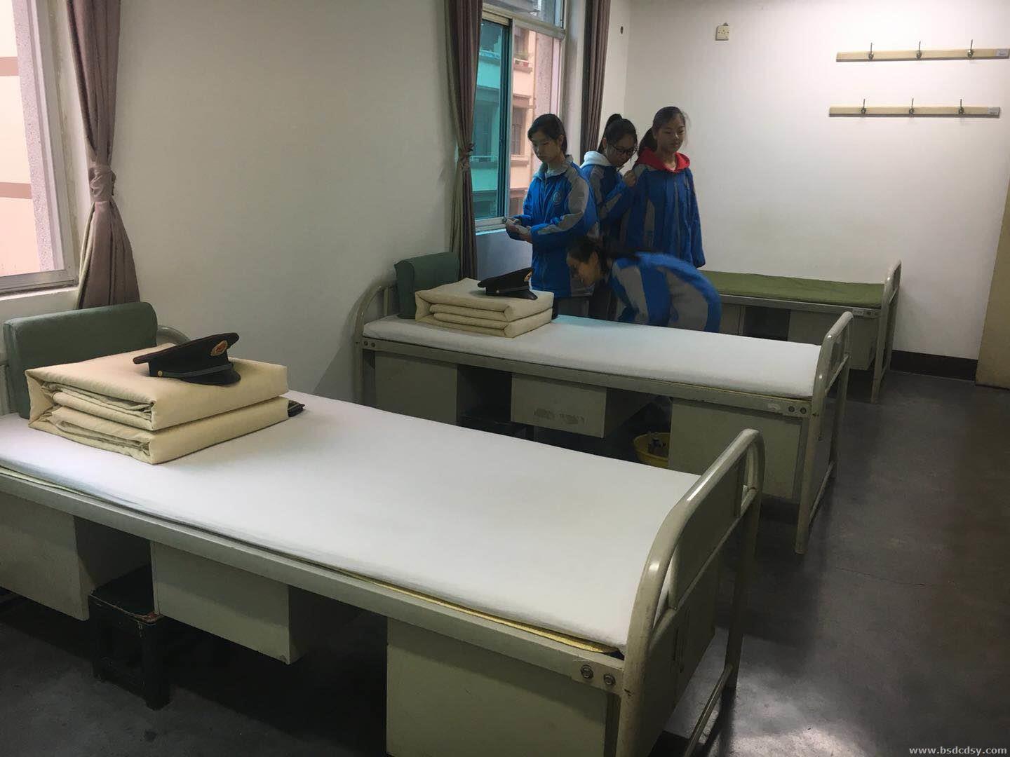 为进一步提升我校公寓文化品质,培养学生内务整理能力,为终身的幸福生活打下基础。我校58名住校生代表在全体生活老师的带领下,于12月13日下午到驻蓉部队观摩学习“内务整理”,使学生真切感受到部队整齐划一的魅力。