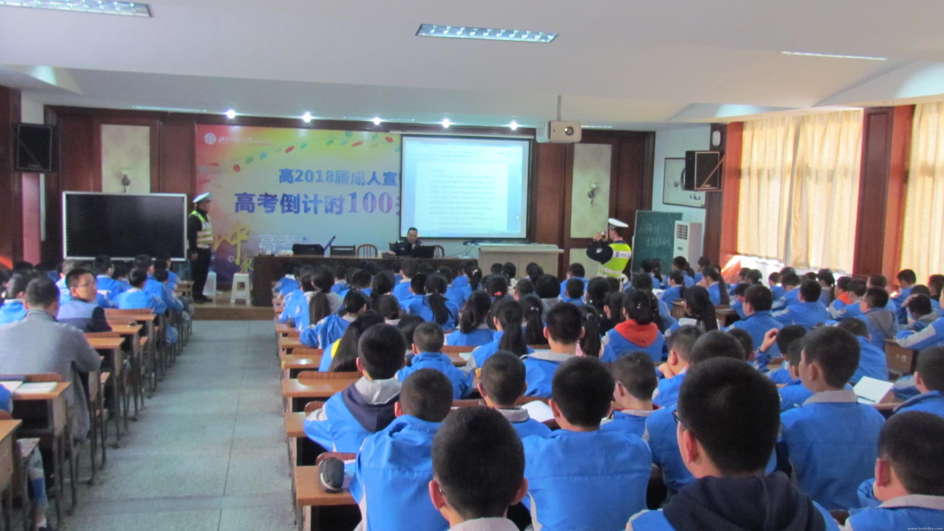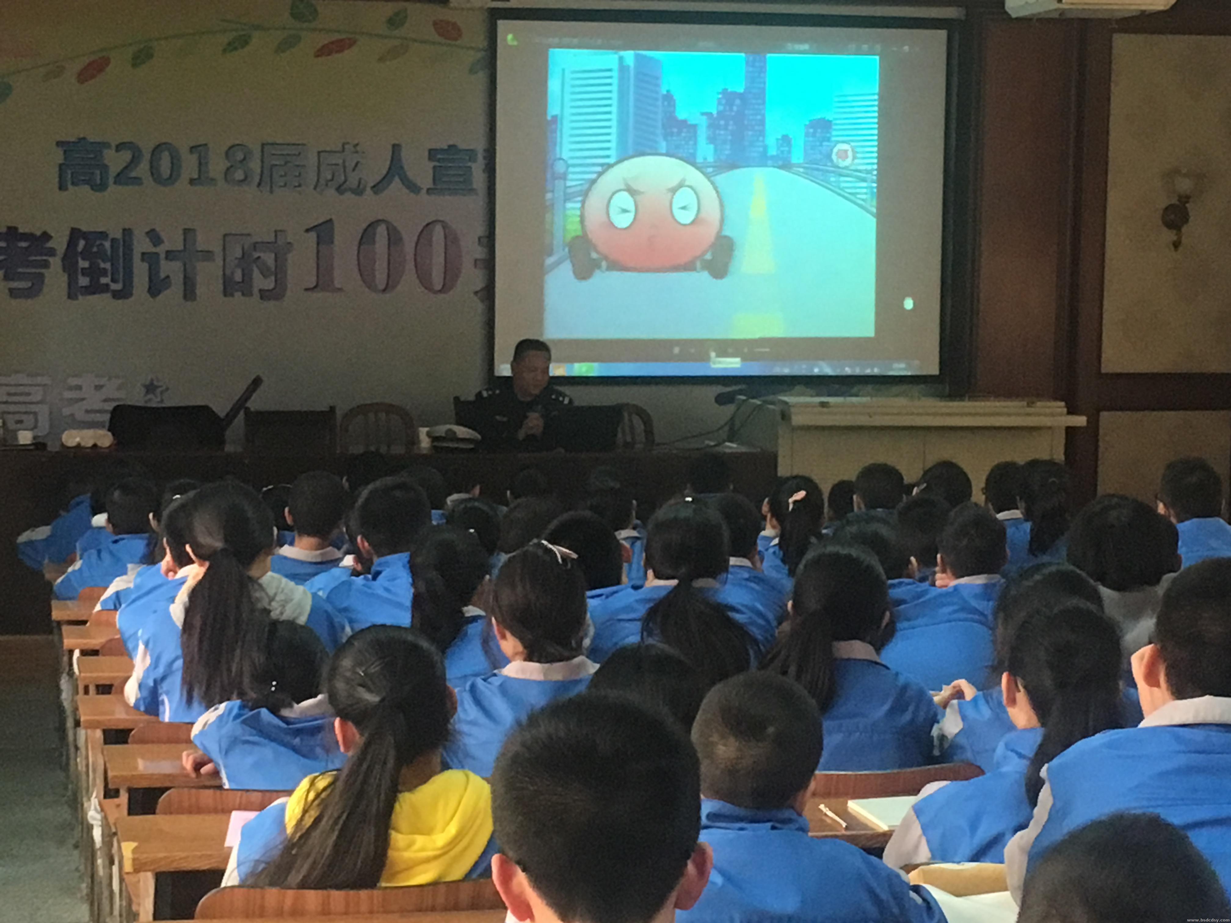【学生处报道】2018年3月14日下午班会课时间,成都市公安局锦江区交警分局的交警带着“生命重大于天”的使命走进校园,为我校初一年级学生上了一堂交通安全课,受到师生们的热烈欢迎。