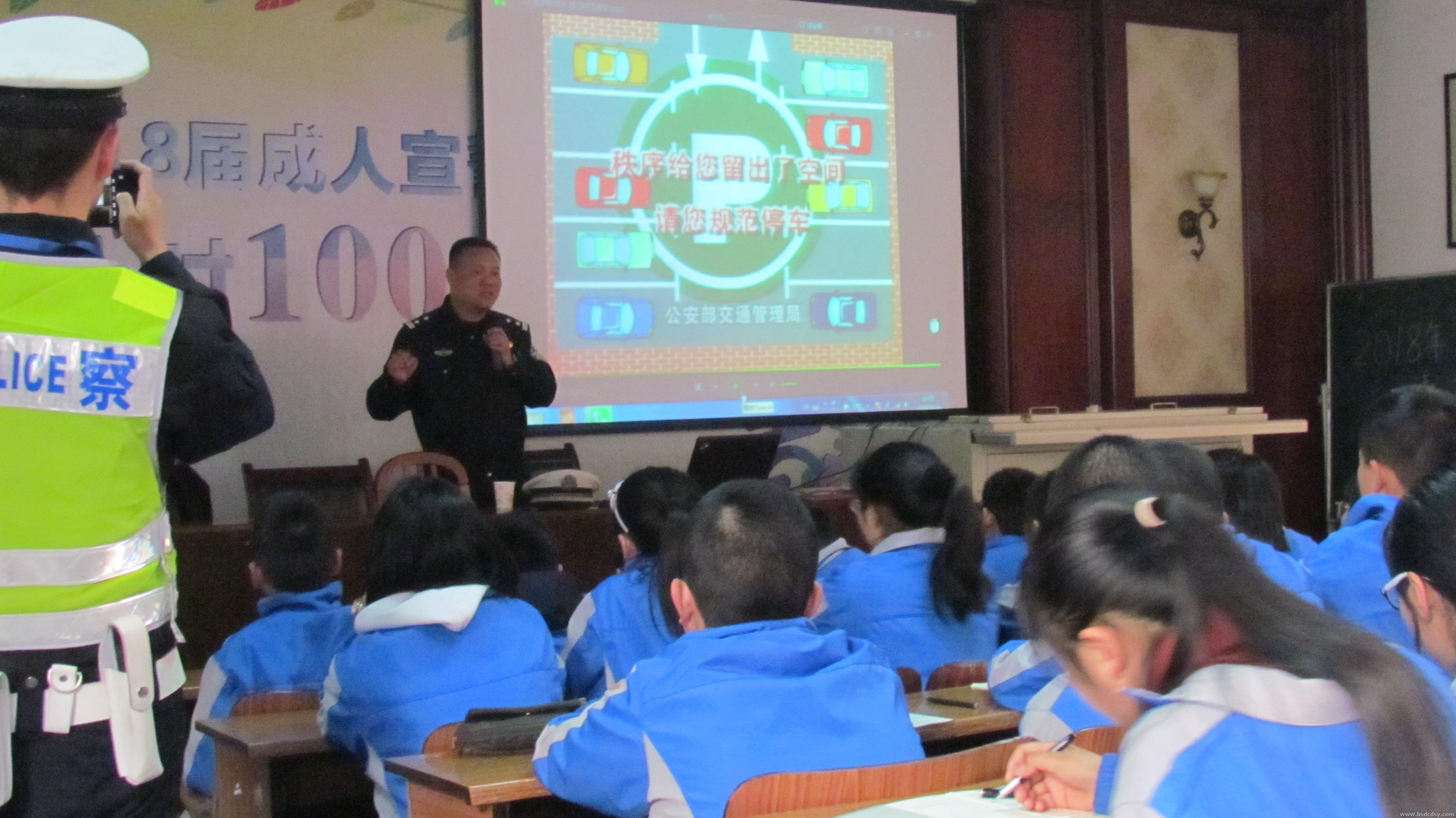 本次活动学校领导十分重视,张文勇副校长亲自接待警官、与他们交流、并自始至终坚守在课堂,聆听交警的讲课。