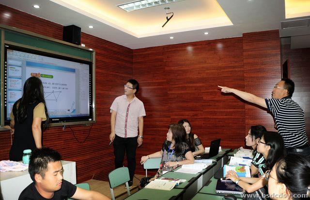 各组老师在小组活动的基础上,推选了教师代表在5月14日分别按照学思课堂理念要求上了一节展示课。北师大基础教育合作办学平台课程与教学研究中心专家王玮光老师、王京华老师、乔荣凝老师对老师们仅用一天时间准备的展示课进行了全面的点评,带领全体老师再次依托课堂实例,按照“八个转”的要求从学科角度出发深入剖析老师们的6节课,实现参会种子教师从理论到实践、从全面思考到实操上课多方位培训体验。