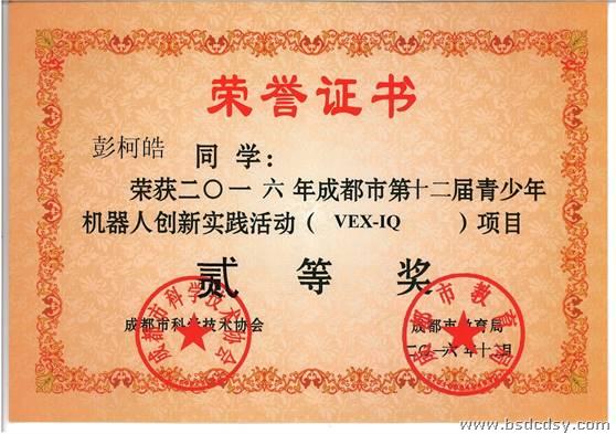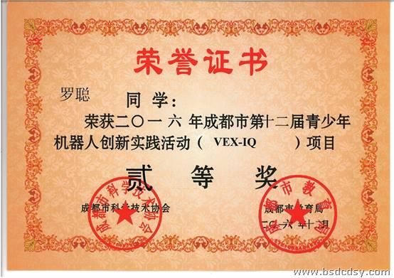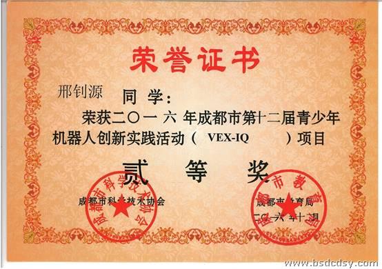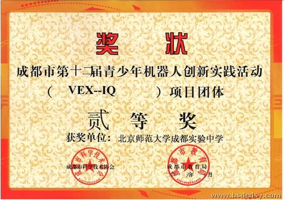 2016年12月17日,由成都市科学技术协会、成都市教育局共同主办的成都市第十二届青少年机器人创新实践活动(VEX-IQ)项目如期举行。